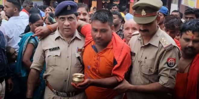 गडौरा (महाराजगंज) श्रावण के पवित्र माह के तीसरे सोमवार को पंचमुखी शिव मंदिर इटेहिया निचलौल महाराज गंज में रात 2:00 बजे से ही लाखों श्रद्धालुओं का तांता लग चुका था। पुलिस उपाधीक्षक/क्षेत्राधिकारी निचलौल सुनील दत्त दुबे व प्रभारी निरीक्षक ठूठीबारी जयप्रकाश यादव प्रभारी निरीक्षक पुरंदरपुर सत्येंद्र राय प्रभारी निरीक्षक चौक श्री श्यामसुंदर तिवारी प्रभारी निरीक्षक बरगदवा चंद्रहास मिश्रा व पुलिस कार्यालय से निरीक्षक संजय सिंह महिला उपनिरीक्षक रंजना ओझा व व भारी संख्या में पुरुष व महिला पुलिस पर लगाया गया इसके अतिरिक्त मेले में पीएसी ,एंटी रोमियो ,गुंडा दमन दल व यातायात कर्मी लगाए गए हैं मौसम अच्छा होने के कारण दर्शनार्थियों की भारी भीड़ लगातार उमड़ रही है।कांवरियों की चिकित्सा एवं भोजन पानी की उचित व्यवस्था की गई है पुलिस कैंप में स्वयं क्षेत्राधिकारी द्वारा घायल कांवरिया की पट्टी बांधकर उसका उपचार किया विकलांग कांवरियों को कंधे पर लेकर उनको भीड़ से बचाते हुए दर्शन कराया गया पुलिस उपाधीक्षक/ क्षेत्राधिकारी निचलौल सभी कांवरियों का फूल माला वर्षा कर स्वागत किया मेले में अभी भी भीड़ निरंतर पहुंच रही है एवं मेले के बाहर तक लंबी लाइनें लगी हुई है इस वर्ष के मेले की अभूतपूर्व व्यवस्था रही कि कोई भी वाहन चोरी अथवा चेन स्नेचिंग की घटना घटित नहीं हुई है सभी दर्शनार्थियों कांवरियों व श्रद्धालुओं को सुगम व सुरक्षित दर्शन कराया जा रहा है।