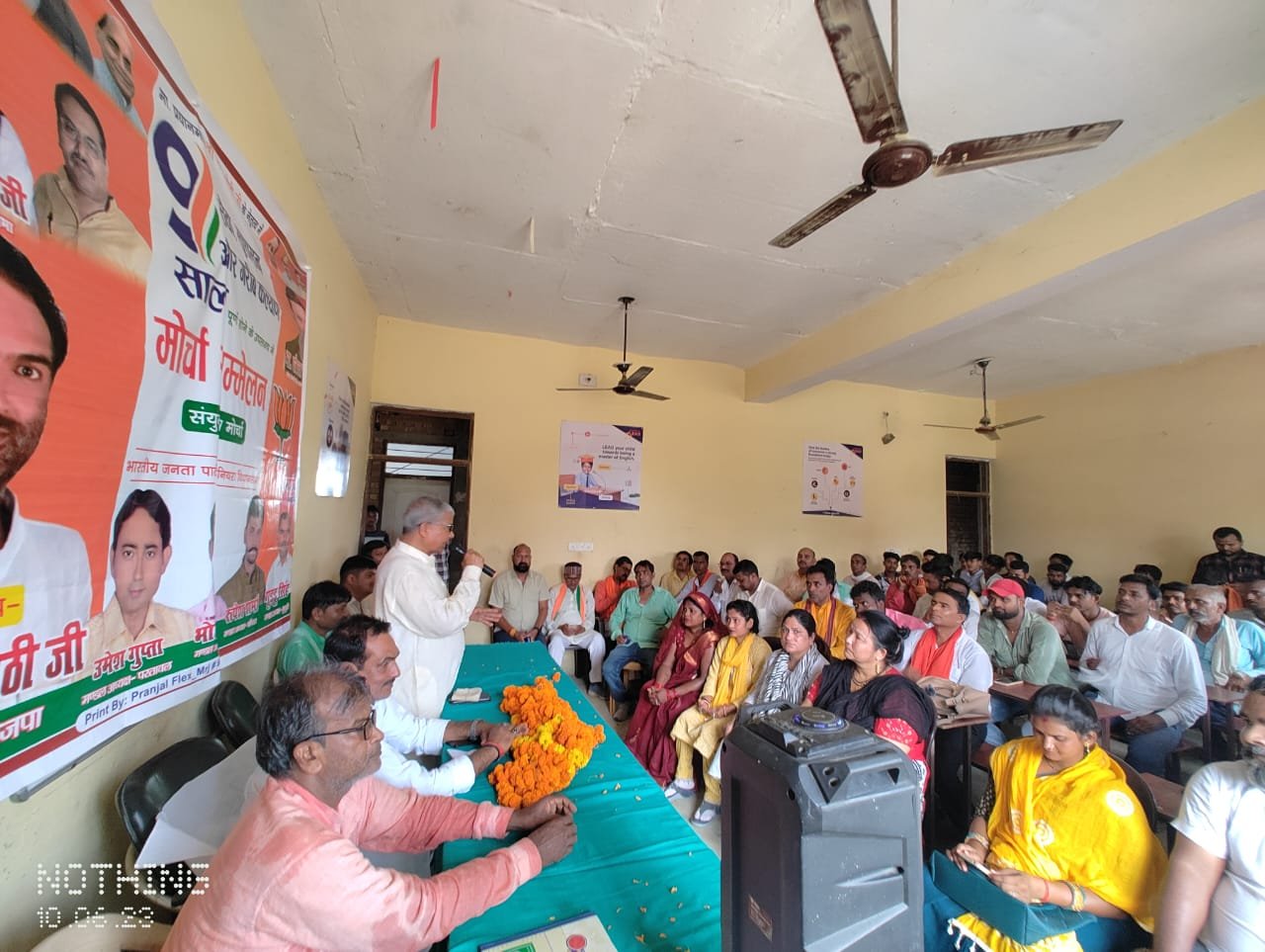 परतावल(महराजगंज)मोदी सरकार के सेवा, सुशासन और गरीब कल्याण के 9 वर्ष पूर्ण होने के उपलक्ष्य में आयोजित “सयुक्त मोर्चा सम्मेलन” पनियरा विधानसभा क्षेत्र के हरपुर चौराहे पर प्रभावती देवी इंटर कॉलेज के प्रांगण में संपन्न हुआ। जिसमें बतौर मुख्य अतिथि पूर्व जिलाध्यक्ष समीर त्रिपाठी एवं विशिष्ठ अतिथि विधायक ज्ञानेंद्र सिंह रहें। कार्यक्रम का संचालन जिला महामंत्री बबलू यादव एवं सभापति केंद्रीय उपभोक्ता भंडारण अंगद गुप्ता ने किया। वहीं कार्यक्रम का अध्यक्षता भाजपा मंडल अध्यक्ष उमेश गुप्ता एवं जयहिंद सिंह ने संयुक्त रूप से किया। मुख्य अतिथि समीर त्रिपाठी ने पदाधिकारियों को संबोधित करते हुए अपने सरकार की उपलब्धियां गिनाई। उन्होंने सरकार की उपलब्धियां गिनाते हुए कहा कि, बीजेपी का सम्मेलन सपा, बसपा के सम्मेलनों से बिल्कुल अलग है।भाजपा में कोई भी कार्यकर्ता छोटा या बड़ा नही होता बस काम करने की इक्षा शक्ति होनी चाहिए। वहीं विधायक ज्ञानेंद्र सिंह ने कहा कि कोरोना जैसी वैश्विक महामारी में मुफ्त टिकाकरण अभियान तेजी से चलाया गया। देश के अस्सी करोड़ गरीबों को मुफ्त में अनाज उपलब्ध वितरित कराया जा रहा है। उन्होंने कहा कि अनुच्छेद 370 और 35 A समाप्त हुआ तीन तलाक़ पर कानून बना। श्रीराम मंदिर का निर्माण भी शांति पूर्वक हो रहा है। देश और प्रदेश का चहुंमुखी विकास हो रहा है। उन्होंने कहा कि मोदी नीत बीजेपी की सरकार में गरीब को खुशहाल जीवन बिताने के लिए