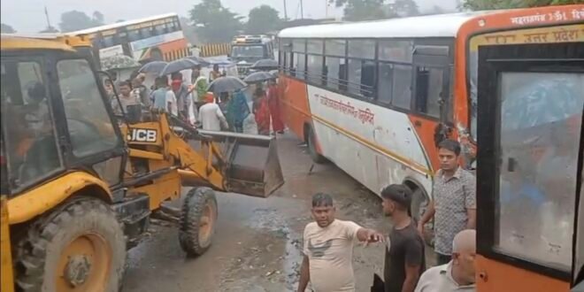 महराजगंज। जिले के भिटौली थाना क्षेत्र के अंतर्गत अगया पुल पर शुक्रवार सुबह बड़ा सड़क हादसा हो गया। तीन सरकारी बसों की आमने-सामने भिड़ंत में अफरा-तफरी मच गई। इस दर्दनाक हादसे में 40 से अधिक यात्री घायल हो गए, जिनमें 15 से ज्यादा की हालत गंभीर बताई जा रही है।जानकारी के अनुसार, महराजगंज से गोरखपुर की ओर जा रही एक सरकारी बस सामने से आ रही दूसरी बस से टकरा गई। टक्कर इतनी जोरदार थी कि बसों में सवार यात्रियों में चीख-पुकार मच गई। इसी दौरान पीछे से आ रही तीसरी बस भी अनियंत्रित होकर दुर्घटना का शिकार हो गई। बताया जा रहा है कि तेज रफ्तार और ओवरटेकिंग की वजह से यह हादसा हुआ।स्थानीय लोगों के मुताबिक, हादसे के करीब आधे घंटे बाद तक एंबुलेंस मौके पर नहीं पहुंची, जिससे घायलों को तत्काल चिकित्सकीय सहायता नहीं मिल पाई। ग्रामीणों और राहगीरों ने ही घायलों को बस से बाहर निकालकर प्राथमिक उपचार देने का प्रयास किया। सूचना पाकर पुलिस मौके पर पहुंची और राहत व बचाव कार्य शुरू कराया।घायलों को नजदीकी स्वास्थ्य केंद्र भेजा गया है, जबकि गंभीर रूप से घायल यात्रियों को जिला अस्पताल रेफर किया गया है। घटना के बाद हाईवे पर लंबा जाम लग गया, जिससे यातायात प्रभावित हुआ।प्रत्यक्षदर्शियों का कहना है कि हादसे का मंजर बेहद भयावह था। कई यात्री खून से लथपथ हो गए थे और चारों ओर चीख-पुकार मची हुई थी।पुलिस प्रशासन का कहना है कि सभी घायलों को बेहतर इलाज उपलब्ध कराने के लिए प्रयास किए जा रहे हैं और मामले की जांच की जा रही है। हादसे के बाद क्षेत्र में मातम और दहशत का माहौल है।