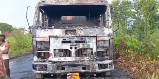 महराजगंज। भिटौली थाना क्षेत्र अंतर्गत पिपरा खादर गांव के समीप शुक्रवार को एक ट्रेलर ट्रक में अचानक भीषण आग लग गई। हादसे में इलाके में अफरा-तफरी मच गई। आग लगने का कारण शॉर्ट सर्किट बताया जा रहा है। इस घटना में ट्रक मालिक झुलस गया, जबकि चालक और खलासी ने कूदकर किसी तरह अपनी जान बचाई। मिली जानकारी के अनुसार, घुघली थाना क्षेत्र के गोपाला से एक ट्रेलर गोरखपुर जिले के सोनबरसा बाजार स्थित एक एजेंसी पर जा रहा था। ट्रक मालिक ने बताया कि वाहन में हीटिंग की समस्या आ रही थी, जिसे ठीक कराने के लिए वे सोनबरसा जा रहे थे। जैसे ही ट्रक पिपरा खादर गांव के पास पहुंचा, तभी उसमें अचानक आग भड़क उठी। आनन-फानन में ट्रक मालिक, ड्राइवर और खलासी ट्रक से कूदकर बाहर निकल आए और घटना की सूचना पुलिस व फायर ब्रिगेड को दी। आग की चपेट में आने से ट्रक मालिक के हाथ-पैर और शरीर के कई हिस्से झुलस गए। उन्हें इलाज के लिए नजदीकी अस्पताल भेजा गया है। घटना की सूचना मिलते ही भिटौली और घुघली थाना पुलिस मौके पर पहुंच गई। चूंकि यह स्थान पकड़ी बिशनपुर के समीप है, जो घुघली थाना क्षेत्र की सीमा से लगा हुआ है, इसलिए दोनों थानों की पुलिस मौके पर पहुंची। फायर ब्रिगेड की टीम ने काफी मशक्कत के बाद आग पर काबू पाया। हालांकि तब तक ट्रक जलकर बुरी तरह क्षतिग्रस्त हो चुका था। फिलहाल स्थानीय पुलिस टीम घटना की जांच-पड़ताल में जुटी हुई है।