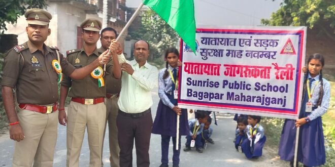 बागापार में सड़क सुरक्षा को लेकर सनराइज पब्लिक स्कूल के छात्रों ने निकाली जागरूकता रैली