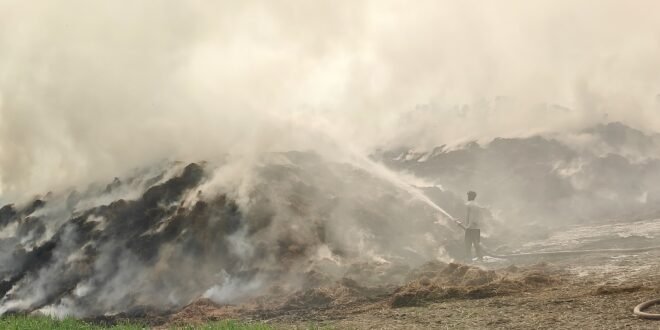 झनझनपुर (महराजगंज)सिंदुरिया थाना क्षेत्र के कसमरिया गांव में बुधवार दोपहर लगभग एक बजे खेत में रखी धान की पराली के बंडलों में अचानक आग लग गई। शुरुआत में धुआं उठता देख ग्रामीणों को कुछ समझ नहीं आया, लेकिन कुछ ही मिनटों में तेज लपटों ने विकराल रूप धारण कर लिया। खेत में एकत्र करीब 60 ट्रक पराली देखते ही देखते आग की चपेट में आ गई और चारों ओर अफरा-तफरी का माहौल बन गया।धुएं का घना गुबार कई किलोमीटर दूर से दिखाई देने लगा। आसपास के ग्रामीण बाल्टियों और पाइप के सहारे आग बुझाने में जुट गए, साथ ही तत्काल अग्निशमन विभाग और पुलिस को सूचना दी गई। सूचना मिलते ही दमकल विभाग की टीम मौके पर पहुंची और राहत कार्य शुरू किया। घटना स्थल के पास स्थित तालाब से पानी की आपूर्ति सुनिश्चित कर आग बुझाने का अभियान चलाया गया। आग इतनी भीषण थी कि पराली के ऊंचे-ऊंचे ढेर धधकते रहे और लपटें दूर तक उठती रहीं। दमकल कर्मियों को आग पर नियंत्रण पाने में भारी मशक्कत करनी पड़ी। करीब पांच घंटे तक लगातार प्रयास के बाद आग पर पूरी तरह काबू पाया जा सका, हालांकि तब तक पूरी पराली जलकर राख हो चुकी थी। अग्निशमन अधिकारी वीरसेन सिंह के नेतृत्व में पहुंची टीम ने सुनियोजित ढंग से आग को फैलने से रोका। आग बुझाने में अग्निशमन कर्मियों ने सक्रिय भूमिका निभाई। प्रत्यक्षदर्शियों के अनुसार यदि समय रहते दमकल विभाग नहीं पहुंचता तो आग आसपास के खेतों तक फैल सकती थी, जिससे और भी बड़ा नुकसान हो सकता था। घटना में पीड़ित को भारी आर्थिक क्षति हुई है। खेत में रखी पराली पूरी तरह नष्ट हो जाने से लाखों रुपये का नुकसान बताया जा रहा है। ग्रामीणों ने प्रशासन से पीड़ित को उचित सहायता प्रदान करने की मांग की है। अग्निशमन अधिकारी ने बताया कि आग को पूरी तरह बुझा दिया गया है और अब किसी प्रकार का खतरा नहीं है। प्राथमिक जांच में आग लगने का कारण स्पष्ट नहीं हो सका है।